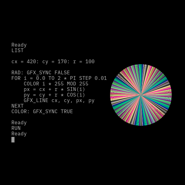A retro-looking BASIC interpreter made for the web. Simplifies the coding experience for learning purposes by mimicking the computers of the 80s. Sports a DOS-like interface, built-in editor, graphics and GPIO support for immediate feedback, and cloud storage drivers for file sharing. Runs on your browser but also on your favorite desktop OS.